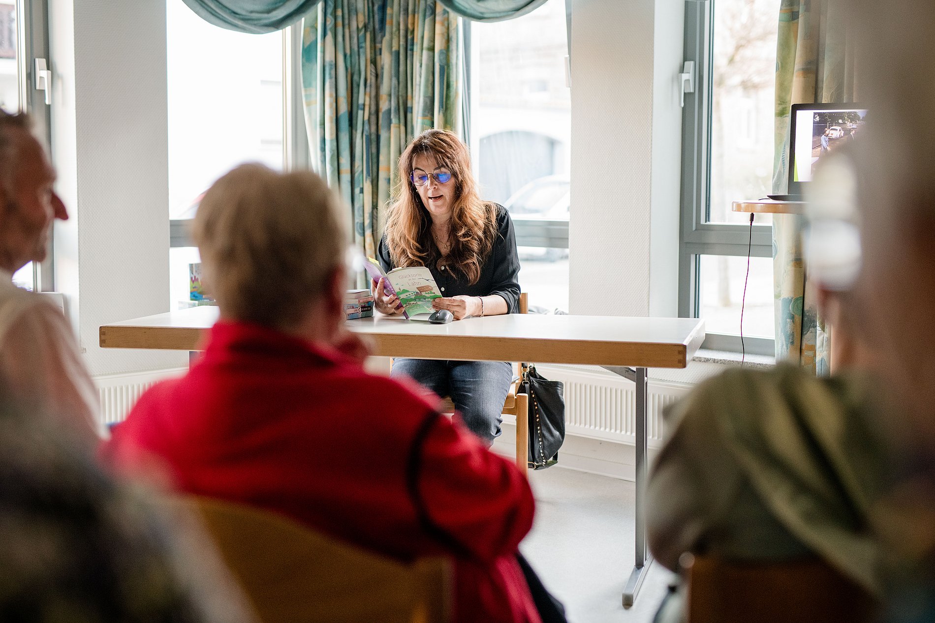Nicht weniger herzlich wurde man in Niedererbach empfangen. Drei der vier Mitarbeiterinnen waren vor Ort und luden zu einer ganz besonderen Autorinnenlesung ein. Nicole Steffens stellte ihre drei Bücher über „Glücksorte“ in unserer Region vor. Mit Bildern, persönlichen Geschichten und kleinen Geheimtipps entführte sie die Gäste auf eine Reise durch wunderschöne Orte – von Alpakawanderungen bis hin zu Yogalessons. Es war inspirierend und erinnerte daran, wie viel Schönes direkt vor unserer Haustür liegt.
